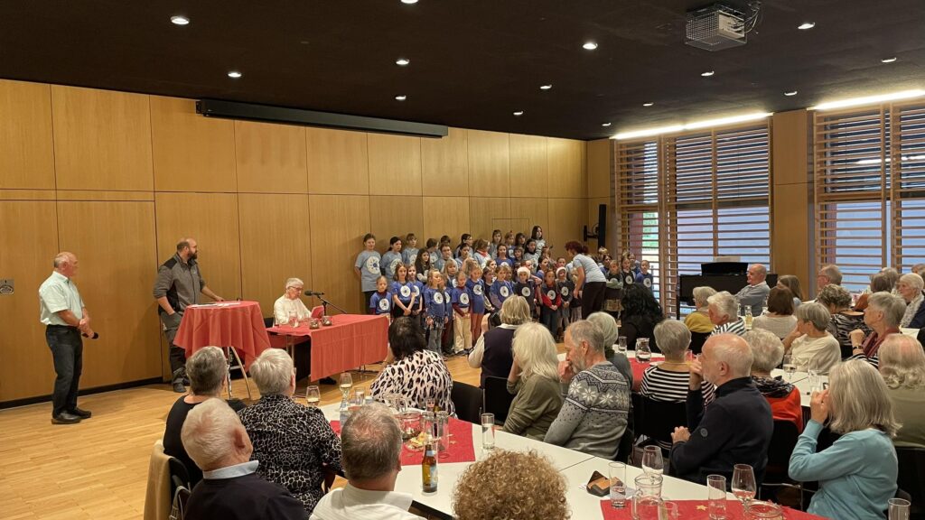 Mehr als 100 Seniorinnen und Senioren füllten den festlich geschmückten Saal bis auf den letzten Platz. Höhepunkt des Nachmittags war der Auftritt des Kinderchors der „Musikschule tonart“ unter Leitung von Victoria Türtscher.